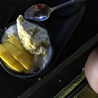 可能还算早吧,人没很多。选了一个靠近 Nam Khan River 的座位,点了一芒果糯米饭+黑茶,翻开《小王子的领悟》继续阅读。