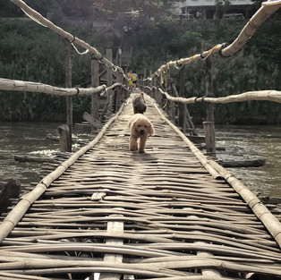 因为地方看起来不大,所以也没打算用GPS,大概问了一下柜台服务员怎么走,就这么离开了酒店,四处逛。走了差不多15分钟,问了一下路边的人,总算找到了那条通往小镇的 Bamboo bridge / Seasonal bridge。之所以会被称为 Seasonal bridge 是因为这桥在每年的雨季,当河水涨到一定的水位后桥会被河水冲走,直到雨季过了当地居民就会建一座新桥。